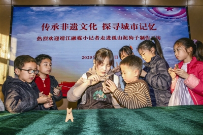 图为小记者们学习制作孤山泥狗子。盛义摄