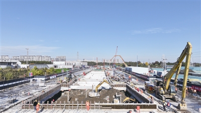 图为盐宜高铁长江隧道盾构始发井主体结构施工现场。