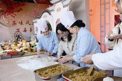 市民体验制作“靖江蟹黄汤包”