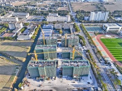 新港城明德青年公寓项目地块位于靖江经济技术开发区学府路南侧,江安路东侧。项目预计2025年底主体结构封顶,2026年底竣工交付,建成后能够满足斜桥中学学生家长陪读需求。图为施工现场。盛义摄
