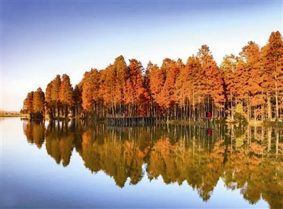 时下,李中水上森林正值最佳观赏期。该景区是天然的“森林氧吧”,拥有“林中有水、水中有鱼、林内有鸟”的独特水乡景观。千亩水杉林立水中,黄、红、棕等颜色交织,宛若童话秘境。走进景区,新鲜的空气带着草木的清香扑面而来。乘一叶竹筏缓缓穿行在林间水道,是解锁这份美的正确方式。竹篙轻点,小船在水巷里前行,两侧的枝叶在游人头顶交织成红色穹顶。鸟鸣清脆,水声潺潺,这里也是野生动物的天堂。林中鸟最多时有6万多只,黄昏时分,百鸟归巢,遮天蔽日,景象蔚为壮观。若有薄雾在林间弥漫开,若隐若现的杉林又是一种独特的美。游玩之余,别忘了举起相机记录下这“船在水中行,人在画中游”的绝美景色。