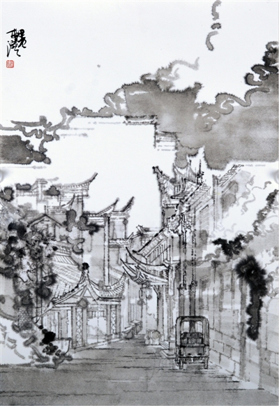 婺源市井(国画)