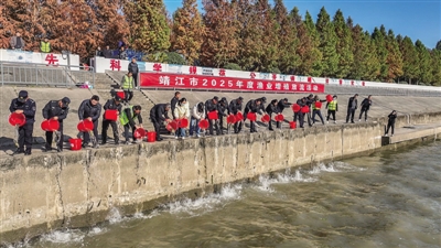 本报讯 (融媒记者肖婧)12月15日下午,我市举行2025年度渔业增殖放流活动,509万尾鱼苗被放入长江,为长江靖江段生态保护注入新活力。