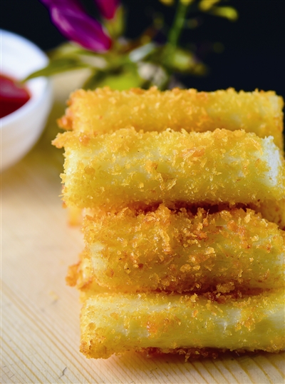 年糕。既然“冬至大如年”,年糕自然也是不能少的,有“年年高升”的美好寓意。而且年糕做法多样,炸着吃、煮着吃、炒着吃都行。鸿运酒楼的脆皮年糕,外皮酥脆、内里软糯,是口感与风味的双重享受,让人在咬下第一口的瞬间,就能感受到满满的幸福感。