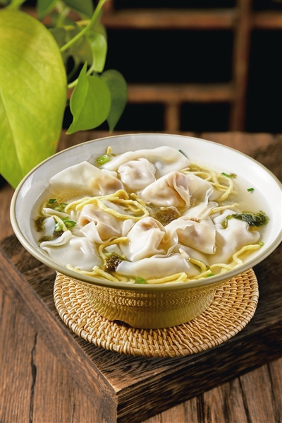 馄饨。在靖江,要说最经常在节日吃的传统美食是哪种,馄饨肯定是当仁不让的。一张小小的面皮,可以“囊尽”所有食材为馅,不仅味道鲜美,解馋又营养,还被人们赋予了很多美好寓意,因外形如元宝,有了招财进宝的寓意。煮熟后“圆鼓鼓”的,又有了团团圆圆之意。鸿运酒楼的馄饨,鲜香味美,饱满多汁,配上靖江最地道的粯子汤,吃到停不下来!