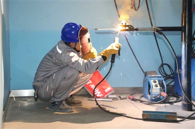 图为职工在参加泰州市“船舶产业链”职业技能竞赛。