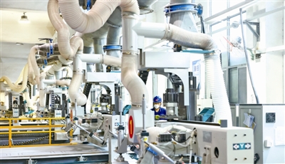 走进公司的精加工车间,多台企业与厂商共同开发的自动化雕刻机正全速运转,硅藻泥原料板经过一系列精密工序,最终变身为一块块纹理美观、功能出色的高品质速干地垫。“这条定制化的生产线,极大提升了工作效率。”公司副总经理毛留益介绍道,它让企业的产能比过去提高了50%以上。