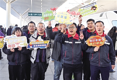 12月23日,包银高铁包惠段正式建成通车,包银高铁全线贯通运营,“八纵八横”高速铁路网京兰通道全线贯通,完善了西北地区高铁路网,为新时代西部大开发注入新动能。图为12月23日,参建者在包头站与包银高铁首发列车D4667次动车组合影。
