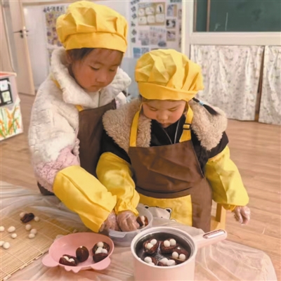 幼儿们制作冬至小食。