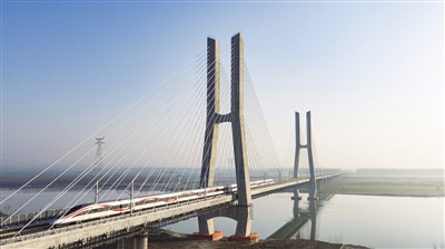 右图为12月26日,在湖北荆门钟祥市境内,列车行驶在沪渝蓉沿江高铁钟祥汉江特大桥上。 新华社发
