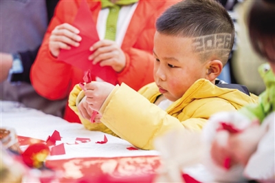 ▲12月28日,在浙江省温州市鹿城区双屿街道垟田社区,小朋友在剪窗花。新华社发