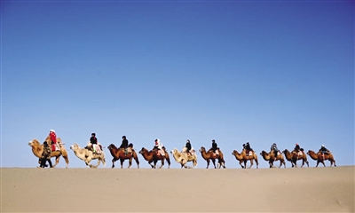 图为1月2日,游客在甘肃省敦煌市鸣沙山月牙泉景区游览。新华社发