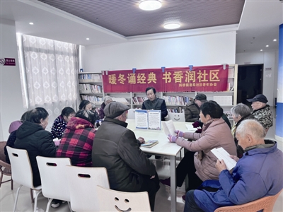 近日,斜桥镇港阜社区老年协会在农家书屋开展“暖冬诵经典,书香润社区”主题阅读活动。活动现场气氛温馨,老人们齐聚一堂,挑选自己喜爱的经典书籍,或静心阅读,或轮流诵读分享。(秦美娟)