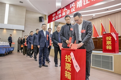 1月14日下午,中国人民政治协商会议靖江市第十四届委员会第五次会议圆满完成各项议程,在雄壮的国歌声中闭幕。