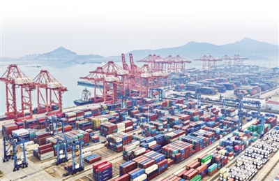 海关总署1月14日发布数据显示,2025年,我国货物贸易进出口总值45.47万亿元,同比增长3.8%,自2017年起连续9年保持增长。图为1月14日拍摄的江苏连云港港集装箱码头外贸装卸作业区。新华社发