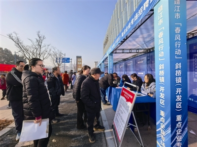 记者从市人社局获悉,今年1~3月,我市将举办60余场“春风行动”系列招聘活动。其中,线下依托市人力资源市场、各镇街“家门口”就业服务站,常态化开展综合性与行业专场招聘活动,线上通过“就在江苏”智慧就业云平台、“靖找零”就业服务平台等开设“春风行动”网络专区,同步开展“直播带岗”“云端送岗”等活动,并组织重点企业赴陕西、云南、河南等劳务输出大省,开展跨区域劳务协作,进一步拓宽招工引才渠道,全力保障企业用工需求,推动实现更加充分、更高质量的就业。
