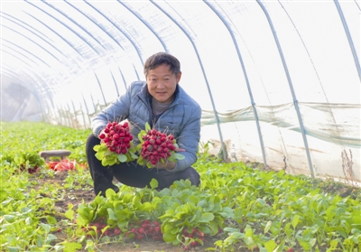 “目前樱桃萝卜的批发收购价在每斤3元左右,主要直销本地及周边酒店,一亩地销售额能达到5000到6000元。”王明根说。
