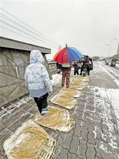 1月20日早上,一条短视频在靖江市民的朋友圈里广泛流传。画面中,中洲桥上铺设了草垫,上学的学生们过桥时,从草垫上行走,防滑又安全,市民也纷纷留言为这一暖心举措点赞。记者走访了解到,草垫由市住建局安排铺设。当天凌晨,市住建局对市区重点桥梁路段进行撒盐融雪作业,先后在合兴桥、阳光大桥等16座桥梁使用融雪剂2吨、铺设防滑草垫600条,同时安排专人对重点桥梁路段的积雪结冰情况进行实时巡查。