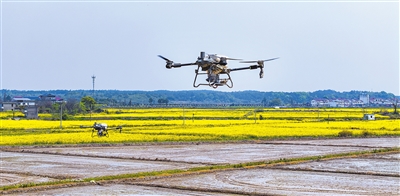 今年,九江市九派城乡集团永修县滩溪农业基地种植早稻面积2300亩,通过采用无人机播种技术,不仅大幅提升了效率,还显著降低了人力成本。图为4月3日,无人机正在进行早稻播种。 本报全媒体记者 梁振堂摄