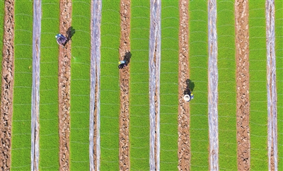 连日来,吉安市吉州区积极开展早稻育秧、插秧等农事。图为4月3日,吉州区长塘镇店下村农民正在给早稻秧苗喷洒农药。通讯员 张建明摄