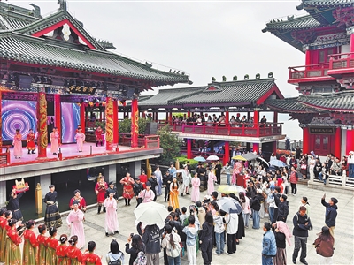4月4日,清明假期首日,游客在南昌滕王阁景区欣赏精彩表演。本报全媒体记者 洪子波摄