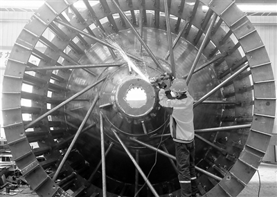 ▼5月4日,工人在河北唐山中材重型机械有限公司生产车间作业。 新华社发 (朱大勇摄)