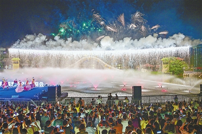 5月9日至11日,2025年中国(南昌)烟花爆竹产业博览会暨烟花爆竹行业高质量发展论坛在南昌绿地国际博览中心举办。图为5月9日晚,游客在南昌融创乐园观看城市焰火创新展演。本报全媒体记者 洪子波摄