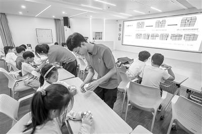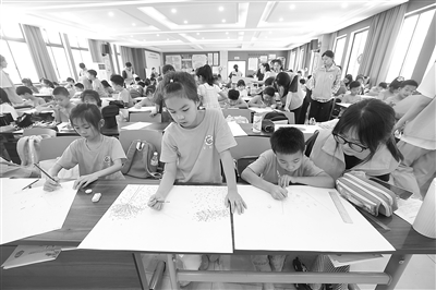 暑假期间,浙江省嘉兴海宁市硖石街道西山社区党群服务中心开启暑期“爱心教室”,课程包括绘画、书法、阅读等,采用“专业社工+志愿者”的模式,为孩子们托起多彩假期。新华社记者 徐 昱摄