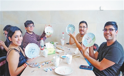 国际友人沉浸式体验中国传统釉上彩绘工艺。汪莉玲摄