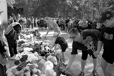 7月25日,人们在俄罗斯阿穆尔州滕达市悼念客机失事遇难者。新华社发(俄罗斯滕达市政府新闻处供图)