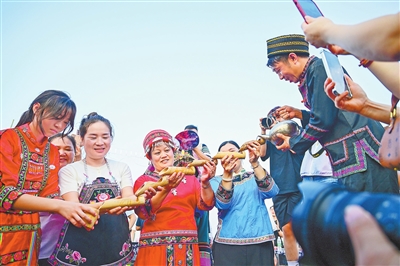 彝族村民用热情的“高山流水”酒礼,迎接八方宾客。