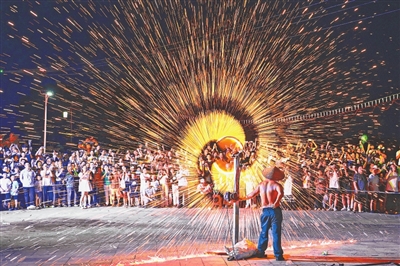 打铁花、风火轮和火壶表演,让游客大饱眼福。
