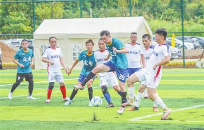 7月21日,定南首届足协杯超级联赛在该县岿美山足球小镇火热开赛,吸引了众多足球爱好者前来以球会友,切磋球技。近年来,定南县积极探索“以球聚人、以赛促旅、以旅兴村”特色发展之路,把足球这一群众基础深厚的运动作为突破口,既修缮乡村球场让村民健身有去处,又通过赛事串联起客家文化、特色美食,让看球变度假,让游客变消费者,让乡村资源转化为发展资本。郭水华摄