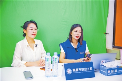 南昌市就业之家内,主播邀请企业人事专员一起“直播带岗”。 本报全媒体记者 侯艺松摄 |