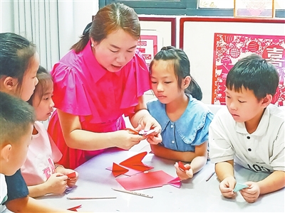 暑期,铜鼓县永宁镇城南社区联合谨文工作室开设儿童剪纸课堂,15名孩子用剪刀和彩纸创作窗花、蝴蝶等作品,体验传统艺术魅力。 本报全媒体记者 徐黎明摄
