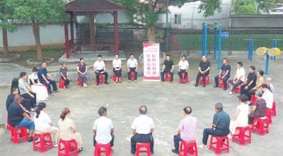 上栗镇在施家台自然村召开“屋场贴心会”,收集村民意见建议。李 龙摄