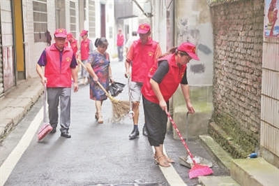 芦溪县芦溪镇华光社区党员志愿者清理居民房前屋后的垃圾。 王 强摄