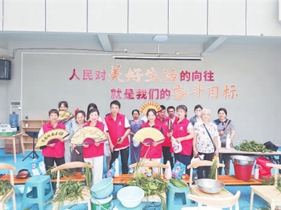 莲花县依托社区党群服务阵地,组织党员志愿者与社区居民共同开展包粽子活动。尹相锋摄