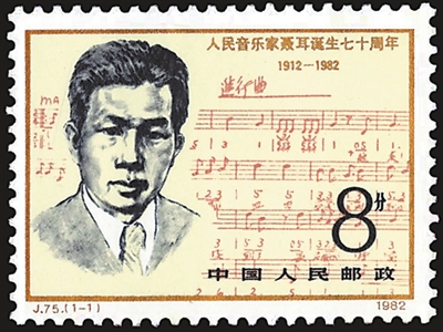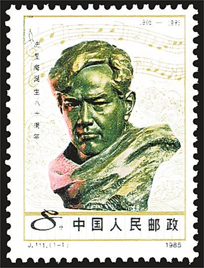 抗战歌曲,是抗战时期重要的文艺种类。抗日救国歌曲数量之大、参与创作的人员之多、影响范围之广,世所罕见。许多抗战歌曲的曲谱、作者或歌曲所反映的场景被印上邮票。在八一建军节到来之际,我们欣赏这些邮票,那催人奋进的激越旋律仿佛在耳边回响。 《义勇军进行曲》(田汉词、聂耳曲) 《义勇军进行曲》诞生于1935年,是苦难民族的呐喊,激励着中华儿女救亡图存、浴血奋战。这首激昂的战歌从上海街头歌咏会唱到台儿庄战场,从武汉唱到延安窑洞,成为抵御日寇的精神长城。 中国邮政1982年发行《人民音乐家聂耳诞生七十周年》邮票,主图是聂耳头像和《义勇军进行曲》曲谱手稿(如图)。1949年9月召开的全国政协第一届全体会议决议,确定《义勇军进行曲》为代国歌。1982年五届全国人大五次会议决定《义勇军进行曲》为中华人民共和国国歌。中国邮政1983年发行《中华人民共和国第六届全国人民代表大会》邮票以“中华人民共和国国歌”曲谱为主图,并在左上饰以国徽。 《大刀进行曲》(麦新词曲) 1933年初,中国军队为抗击日寇,在长城的古北口、喜峰口等地进行了一系列战斗。在喜峰口的抗战中,二十九军夜袭队手持大刀,奋勇冲杀,取得了胜利。音乐家麦新受大刀队战士们事迹的鼓舞,于1937年创作了《大刀进行曲》。歌曲像是向全国军民发出的战斗号召,成为时代强音和民族精神的象征。 中国邮政2015年发行《中国人民抗日战争暨世界反法西斯战争胜利七十周年》邮票,第四枚“中国人民抗日战争纪念馆”背景图案正是将士挥舞大刀、奋勇杀敌的场景。 为纪念抗战胜利30周年,雕塑家潘鹤与梁明诚于1975年创作了大型雕塑《大刀进行曲》,其灵感正是源于这首抗战歌曲。中国邮政2015年发行《中国人民抗日战争暨世界反法西斯战争胜利七十周年》小型张,就是以这件雕塑为主图(如图)。作品通过军民抗战者群像,展现了中国人民英勇不屈的战斗精神。 《游击队歌》(贺绿汀词曲) 抗战时期,共产党领导的八路军和新四军,广泛开展运动战和游击战。中国邮政1977年发行《中国人民解放军建军五十周年》邮票第三枚,展现的就是游击队员转战青纱帐的画面。 1937年,作曲家贺绿汀来到山西抗日前线为抗日部队演出,与指战员有了更直接的接触,因而创作了《游击队歌》。歌曲生动活泼,旋律轻松流畅,表达了游击战士们巧妙、灵活地与敌人周旋,伺机消灭敌人的典型形象,表现出游击队战士在艰苦的斗争环境中的昂扬斗志和必胜信念。中国邮政2012年发行的《中国现代音乐家(一)》邮票,第三枚表现的就是音乐家贺绿汀的形象,画面背景为《游击队歌》歌词手稿(如图)。 《在太行山上》(桂涛声词、冼星海曲) 1937年,青年爱国诗人桂涛声来到山西陵川开展抗日救亡宣传活动。他目睹了太行王莽岭的千山万壑,触景生情,“我们在太行山上”的诗篇从心底迸发而出。1938年,桂涛声在武汉请冼星海谱曲。同年7月,歌曲《在太行山上》在武汉纪念抗战一周年歌咏大会上首次公开演唱。随后,铿锵有力的歌声迅速在太行、吕梁山脉,在晋察冀边区,在大江南北的敌后根据地飞扬,鼓舞着千万民众踊跃投身抗日战场。中国邮政2023年发行的《太行山》邮票第四枚“王莽奇峰”,画面就是位于山西陵川境内的巍巍太行(如图)。 《黄河大合唱》(光未然词、冼星海曲) 奔腾的黄河,到了壶口骤然收束,河水从陡崖上倾泻而下,极为壮观。1938年秋冬,诗人光未然正是被壶口瀑布所震撼,激发了创作灵感与激情。1939年,光未然和冼星海在延安相遇,创作出了歌曲《黄河大合唱》。 中国邮政1985年发行《冼星海诞生八十周年》邮票,画面是音乐家冼星海的铜像,背景是象征黄河的波涛与《黄河大合唱》的部分曲谱(如图)。《黄河大合唱》展现了抗日战争的壮丽图景,塑造了中华民族巨人般的英雄形象,成为中国音乐史上的经典之作。 《八路军进行曲》(公木词、郑律成曲) 八路军在抗战时期英勇作战,取得了许多辉煌的战绩。正是被八路军的战斗精神所鼓舞,1939年,公木、郑律成在陕北的窑洞里,共同创作了《八路军进行曲》。 1939年冬,《八路军进行曲》在延安中央大礼堂首演。中国邮政1964年发行的《革命圣地——延安》邮票第二枚就是绿树掩映下的中央大礼堂。琅琅上口的歌词,热情豪迈的曲调,正是从这里唱响后,在各抗日根据地传唱。抗日战争胜利后,这首歌更名为《中国人民解放军进行曲》,后又被确定为《中国人民解放军军歌》。历次首都阅兵分列式上演奏的《分列式进行曲》,也是改编自这首军歌。中国邮政2009年发行《中华人民共和国成立60周年国庆首都阅兵》邮票(如图),展现的就是受阅方队伴随着旋律流畅、音调坚实、节拍规整的进行曲走过天安门广场的英姿,充分展现出人民军队豪迈雄壮的军威,以及一往无前的战斗风格和摧枯拉朽的强大力量。从英雄城南昌走出的人民军队,高唱着军歌从胜利走向新的胜利。