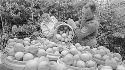 ?7月29日,南丰县三溪乡柏苍村百亩鹰嘴桃进入采摘期,果农趁着晴好天气采摘。 通讯员 李煜祖摄