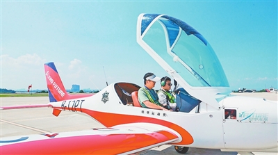 游客体验飞机驾驶。 本报全媒体记者 侯艺松摄