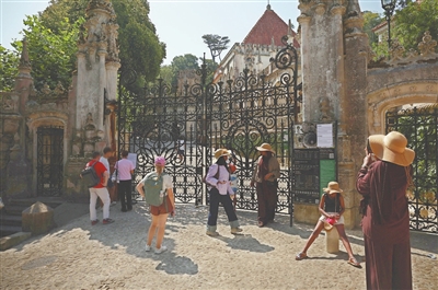 8月4日,在葡萄牙辛特拉,人们从门外查看因高温和野火风险暂时关闭的雷加莱拉庄园。葡萄牙内政部长玛丽亚·露西娅·阿马拉尔2日宣布,由于极为严重的高温天气加剧了葡萄牙一些地区的野火风险,全国自3日0时起进入警戒状态。 新华社/路透