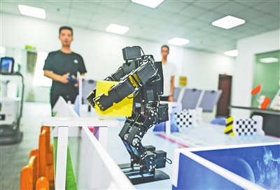 5月26日,在江西水利电力大学工程训练中心,廖高华博士指导学生开展机器人技术综合实训。