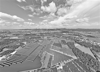 近年来,抚州市东乡区虎圩乡陈塘村通过光伏发电项目,形成农光互补、渔光互补等生态发展新模式,在提供清洁能源的同时,壮大村集体经济。图为8月4日拍摄于陈塘村的东乡吉电中万农业光伏发电项目。 本报全媒体记者 吴福清 摄