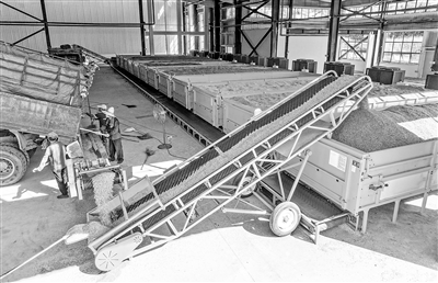 ▲近年来,南丰县加大粮食绿色高效烘干设备投入,解决农户晒粮存粮难题,确保稻谷及时烘干入库。图为7月29日,在桑田镇粮食烘干服务中心,工人利用传送带将稻谷运送到烘干机烘干。通讯员 谢 东摄