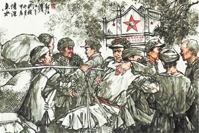 图6:《鱼水情深》 运盐民众历尽千辛万苦,最终把食盐送到了瑞金,有力地支援了中央苏区的革命斗争。