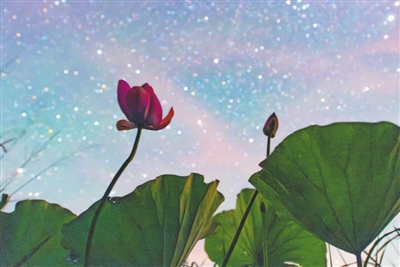 ?8月4日在位于黑龙江省富锦市的黑龙江三环泡国家级自然保护区拍摄的星空下的荷花。 农历六月,也称“荷月”。此时荷花盛放,亭亭净植,不染淤泥,不畏骤雨,是极具“节令之美”的象征。“接天莲叶无穷碧,映日荷花别样红。”宋代诗人杨万里描写荷花的诗句流传千古。古人以荷消暑,以荷入诗,以赏荷寻得心灵的宁静。 新华社发(曲玉宝摄) |