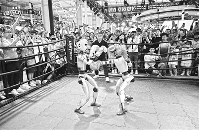 ?图为机器人进行格斗比赛。 本报特派全媒体记者 史港泽摄 |