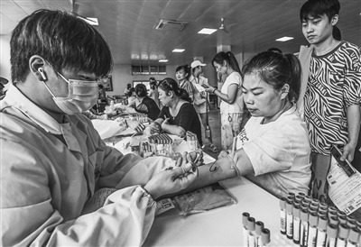 连日来,省总工会组织专业医务人员搭乘“健康快车”深入山区企业,为一线职工提供体检服务。图为8月6日,省工人疗养院医生在资溪县圣农食品企业“职工之家”活动中心为职工进行体检。特约通讯员 吴志贵摄