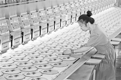 近年来,新余市鼓励文创企业紧跟市场需求,依托数字化生产模式,开发兼具艺术性和实用性的文创产品,进一步拓宽国内外市场。图为8月13日,位于新余经开区的江西利绣文化有限公司,工人在全自动刺绣机上检查团扇等产品。本报全媒体记者 邹宇波摄